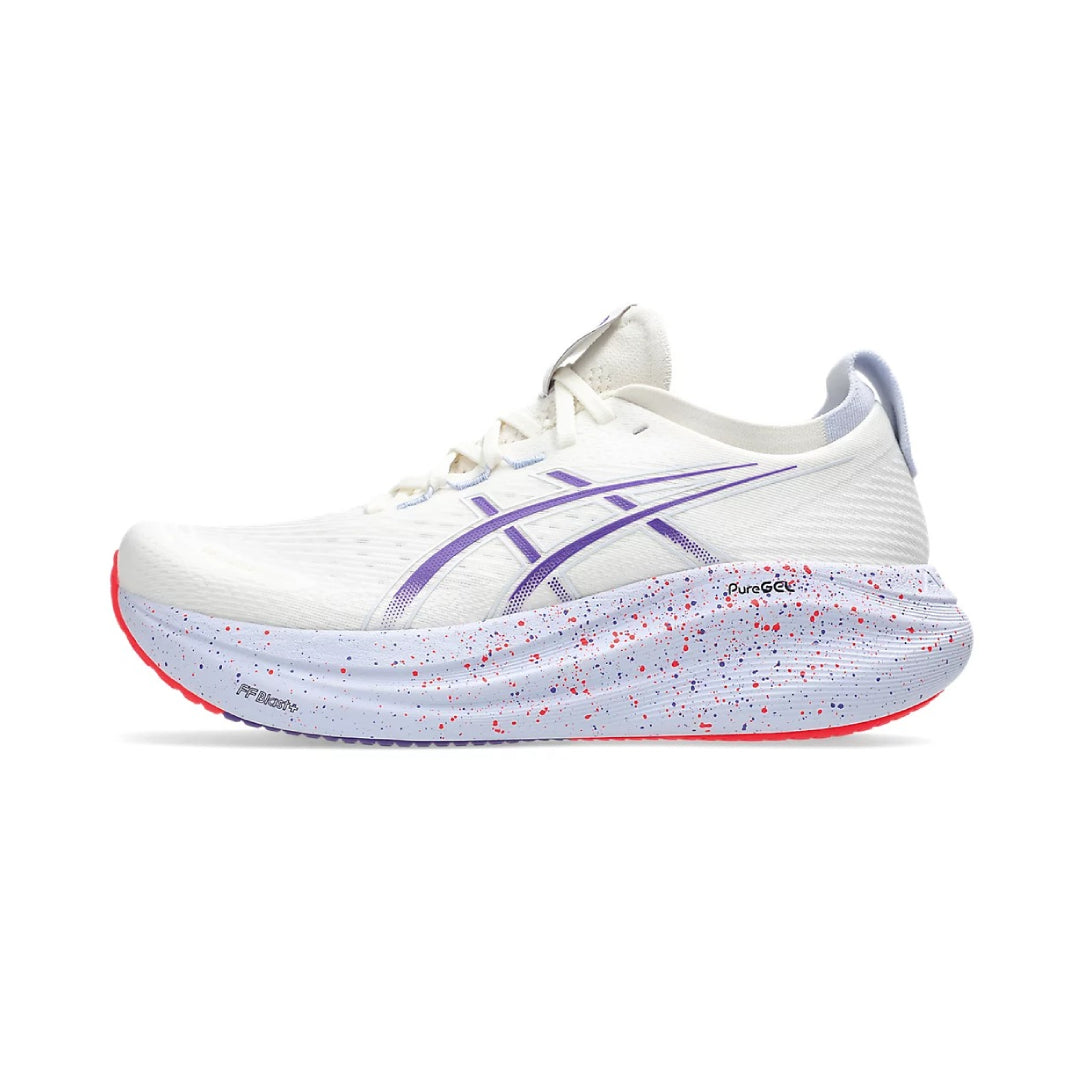 The GEL-NIMBUS™ 27 TOKYO running shoe delivers the signature cloud-like cushioning of the Nimbus series with a softer, smoother underfoot experience. Designed to provide lightweight, plush comfort, this shoe helps runners enjoy long-distance training with reliable support. The engineered mesh upper, advanced midsole technology, and HYBRID ASICSGRIP™ outsole combine to create a shoe that is both responsive and durable, while reflective details enhance visibility during low-light runs.