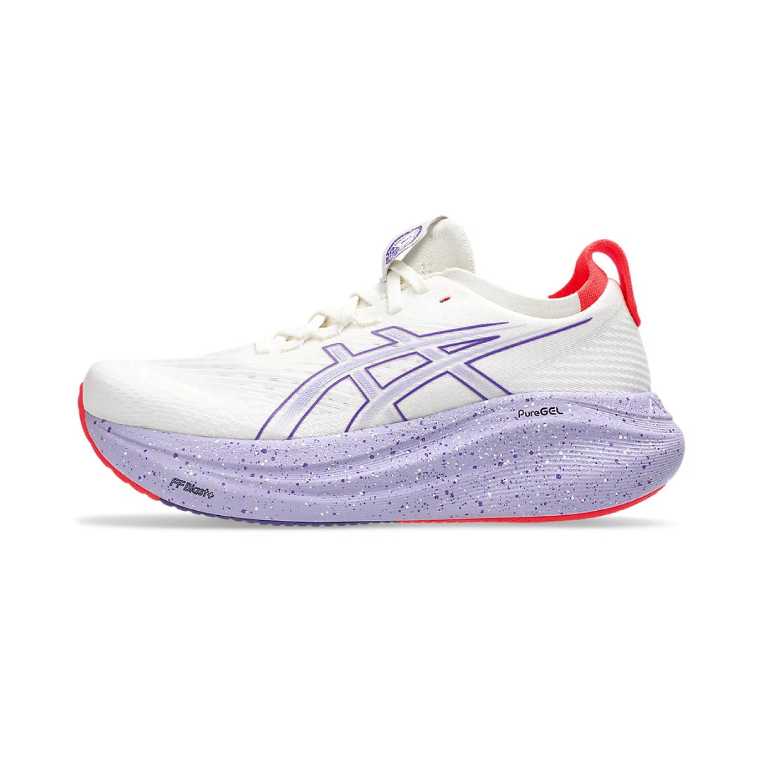 The GEL-NIMBUS™ 27 TOKYO running shoe delivers a cloud-like, soft, and smooth running experience. Featuring FF BLAST™ PLUS cushioning and PureGEL™ technology, it provides lightweight impact absorption and responsive comfort. The engineered mesh upper, knit tongue and collar enhance ventilation and fit, while the HYBRID ASICSGRIP™ outsole ensures superior grip and durability. Reflective details improve visibility during low-light runs, making it ideal for daily training and long-distance road running.